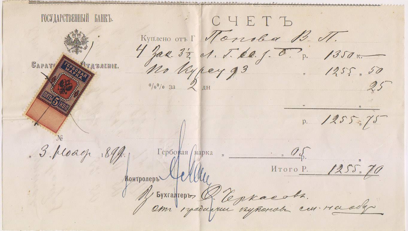 Дореволюционный банковский чек. Обратите внимание - он с гербовой маркой.