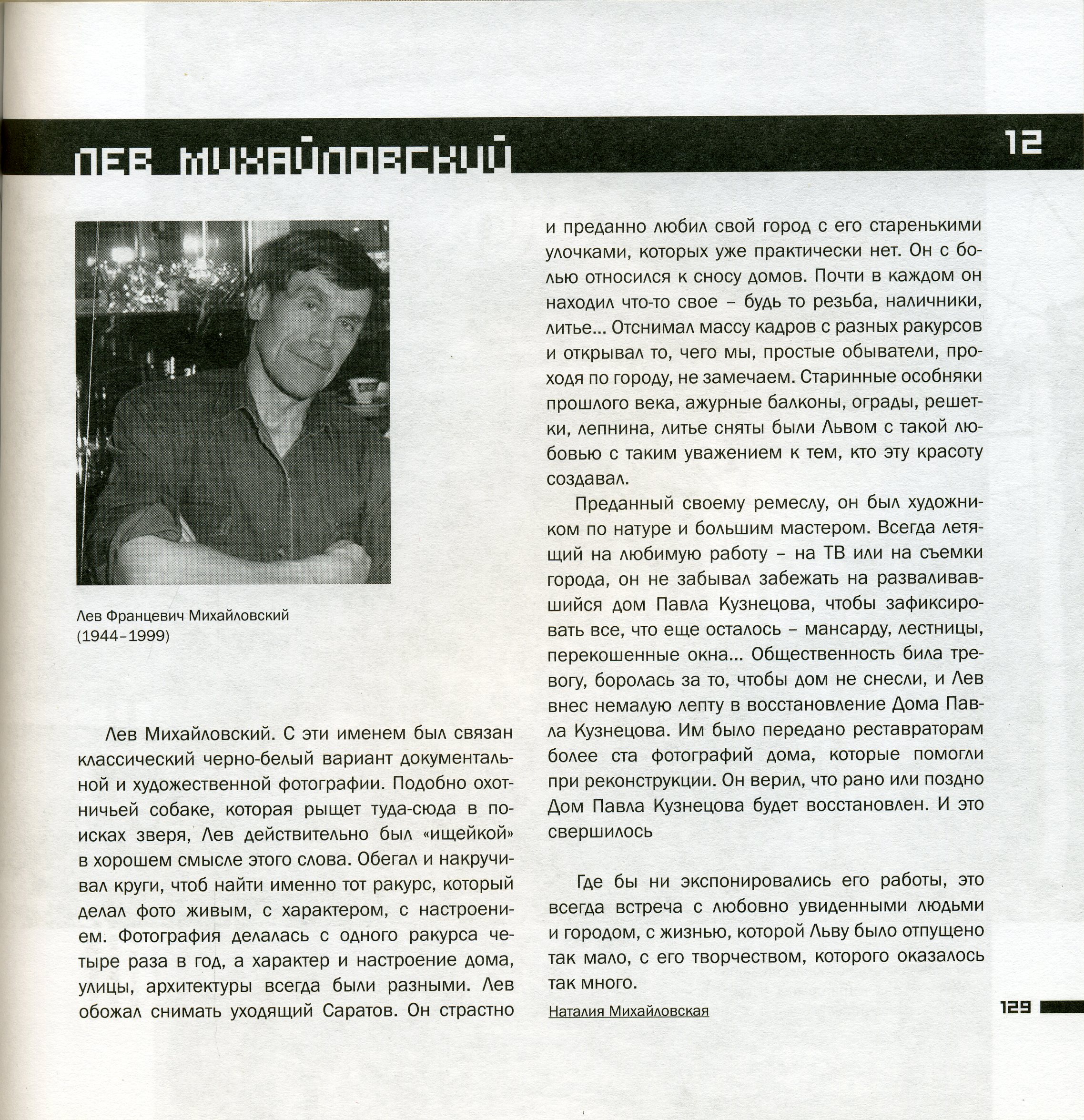 Фотограф Лев Францевич Михайловский(1944-1999).