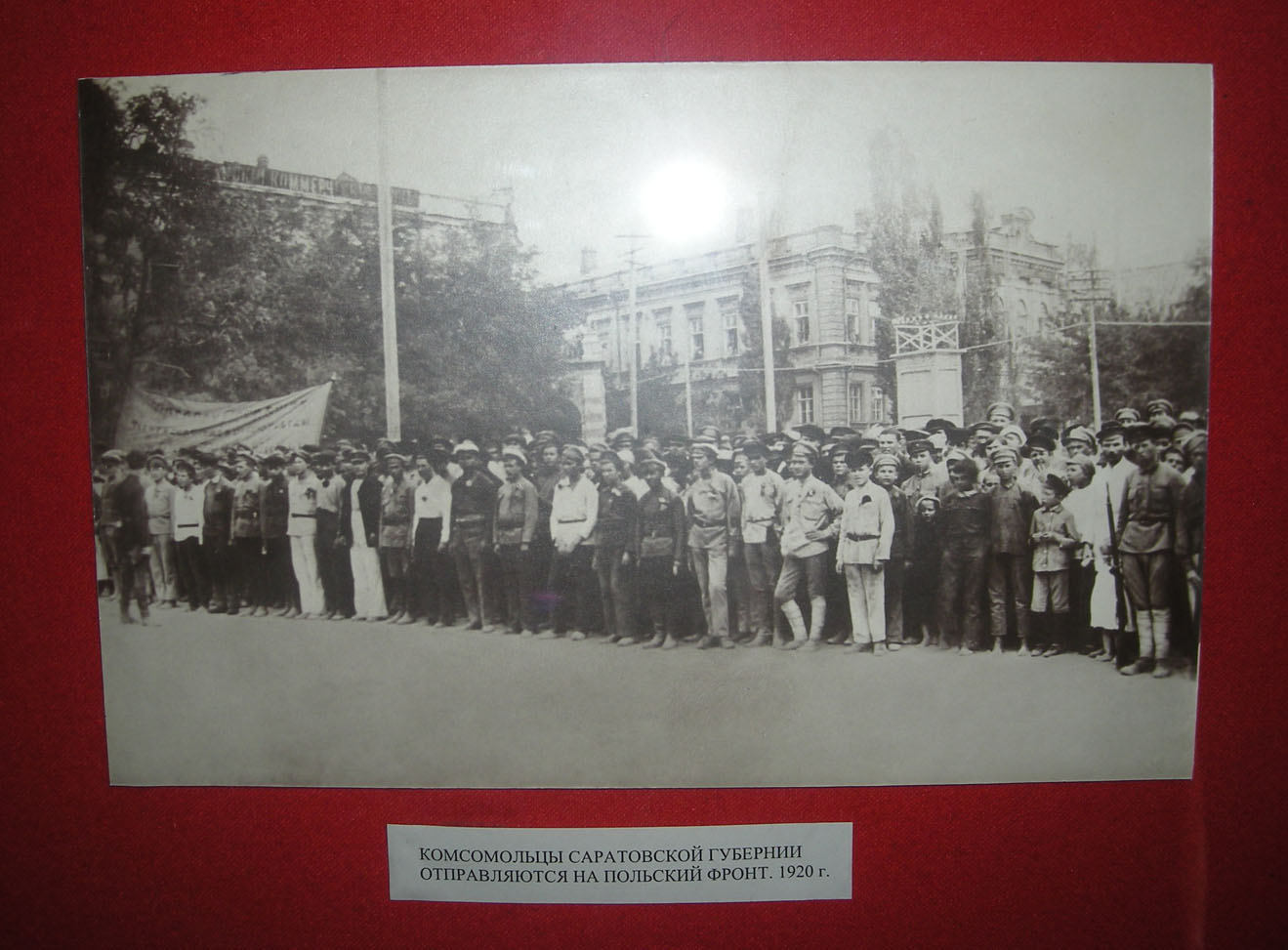 "В июне 1920 года губернская комсомольская организация направила на польский фронт 317 комсомольцев, а в августе на борьбу с Врангелем еще более 100." "В отчете о деятельности Балашовского укома РКСМ за май 1920 года говорится: «В связи с наступлением польской шляхты на Советскую республику молодежь уезда стихийно уходила на фронт, и уком не в силах был их остановить. Боевой дух был настолько велик, что 42 добровольца, не дожидаясь соответствующих директив губкома, самовольно уехали на Западный фронт»." http://work-engels.ru/archives/19552