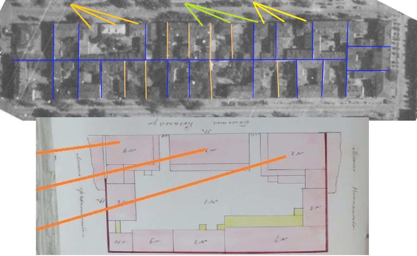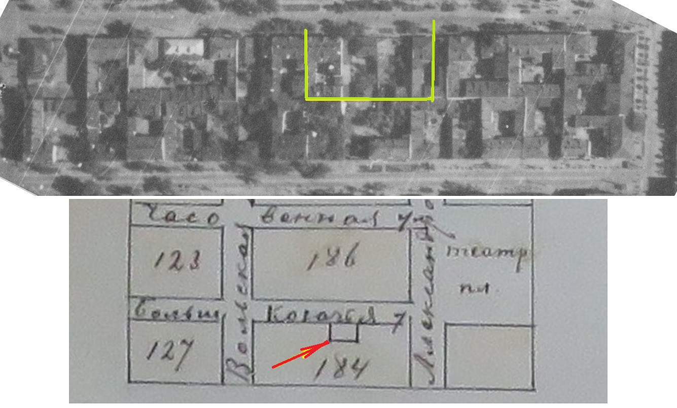 - Или признать, что ошибка с названием улицы случайна и схема расположения участка внутри 184 квартала в целом верна. И тогда получается несоответствие обозначенного участка с современными домами №37 и №35. И надо искать причину этого несоответствия.