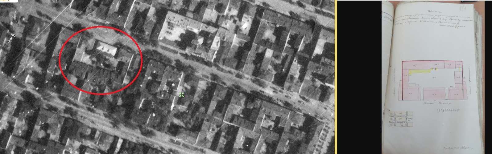 У меня не вызывает сомнения , что на фото правое здание из домовладения Гуляевых, т.е. то , что граничит с домовладением Феоктистова.