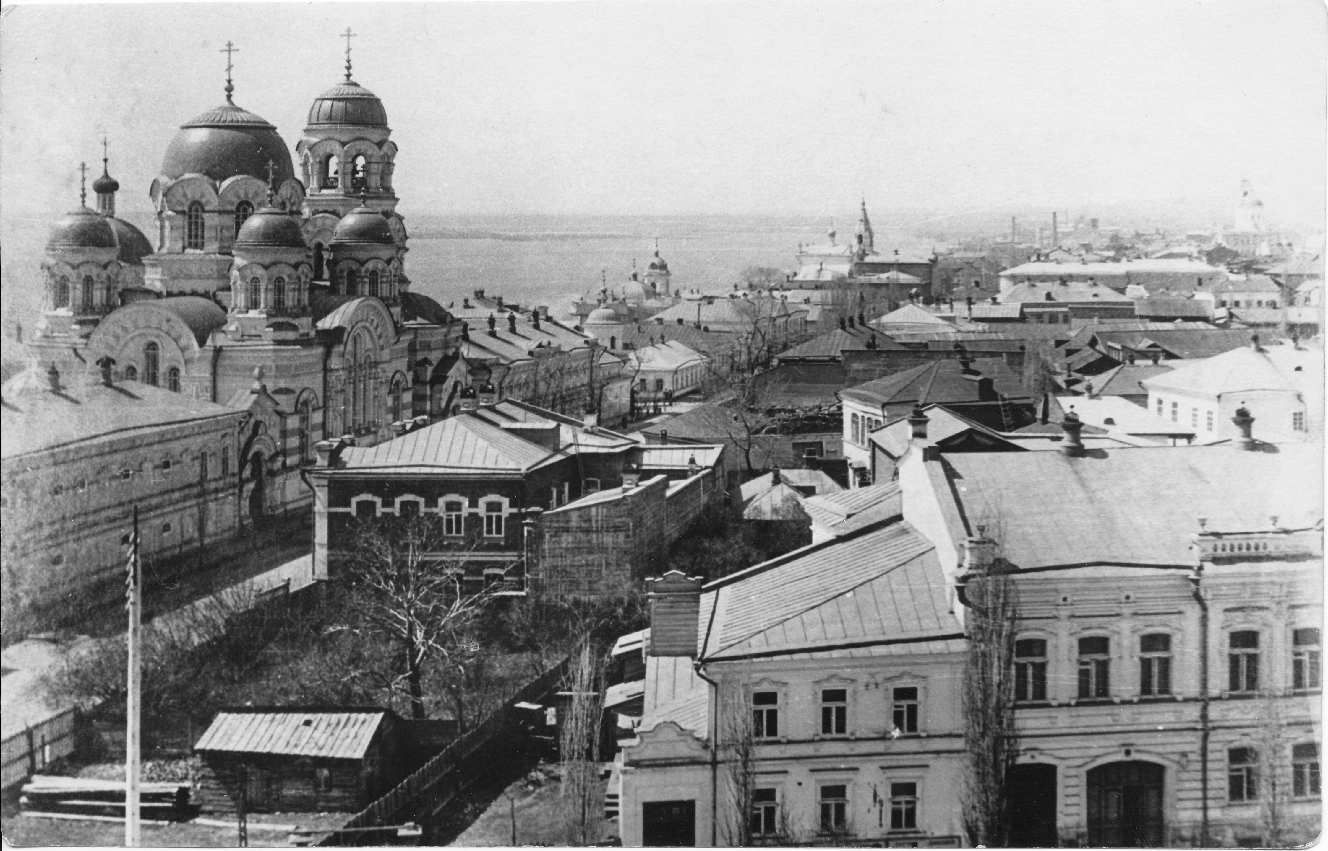 Вот так это фото (из архива СОМК) выглядит на стенде музея Саратовской митрополии: