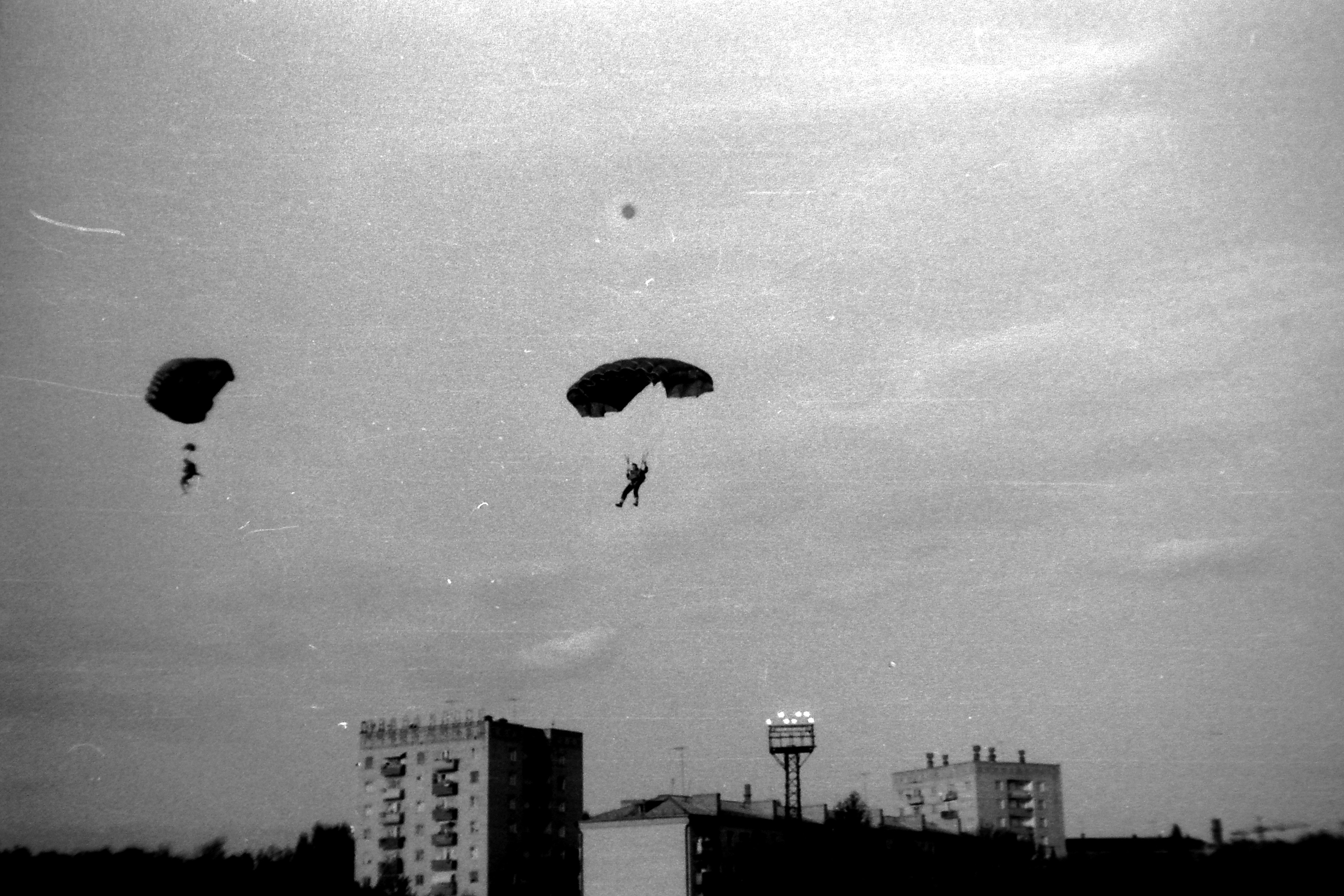 На заднем плане справа видна школа №15. На крыше видно лозунг "Отлично учиться. Активно трудиться-наша задача!" установленный в 1981 году.
