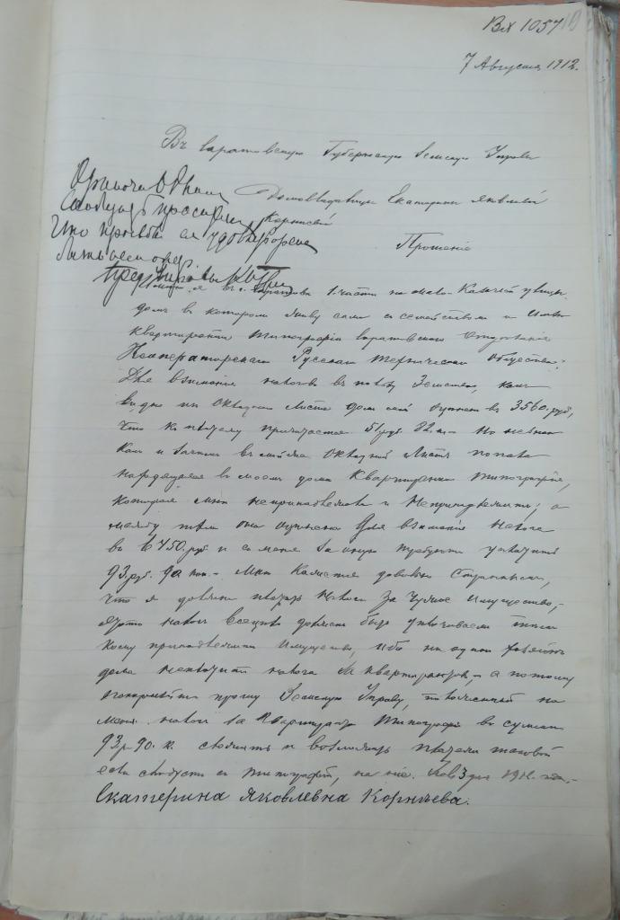 В деле ГАСО 5.1.3125 сохранилась перепеска Екатерины Яковлевны Корнеевой с Губерноской земской управой о снижении налогов.