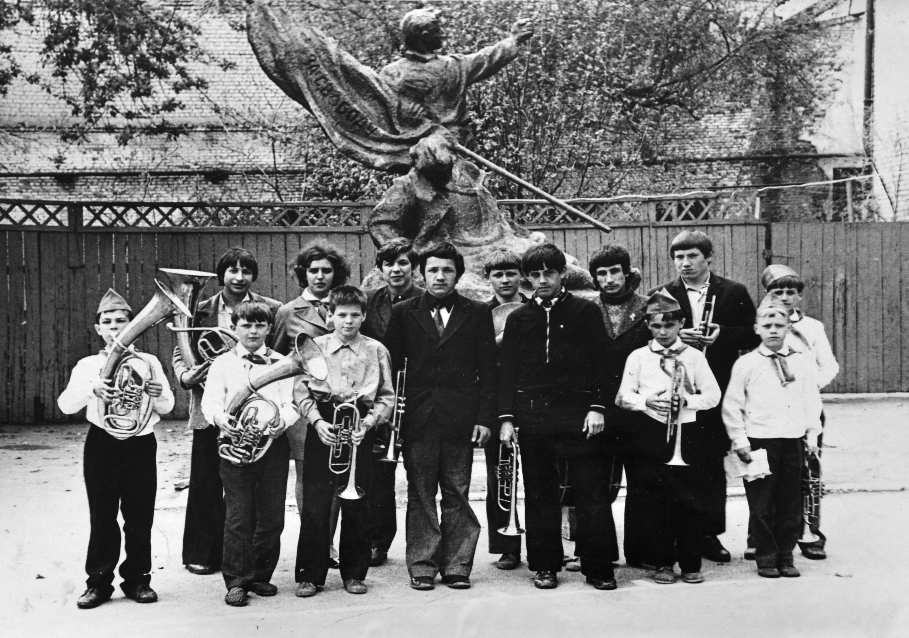 Это памятник отцу и сыну Маркиным. У Рассветова много фотографий этого памятника. По сторонам основания висят мемориальные таблички с текстами: "В 1906 году Г.А. Маркин шел со знаменем впереди колонны бастующих рабочих. Жандармы его убили. Знамя подхватил сын Николай и донес до великого Октября", "Маркин Николай Григорьевич (20(8) мая1893 - 1 октября 1918 г.) Он был пастухом и батраком. С 14 лет вел революционную пропаганду, за что в 1910 г. заключался в тюрьму." и т.д.