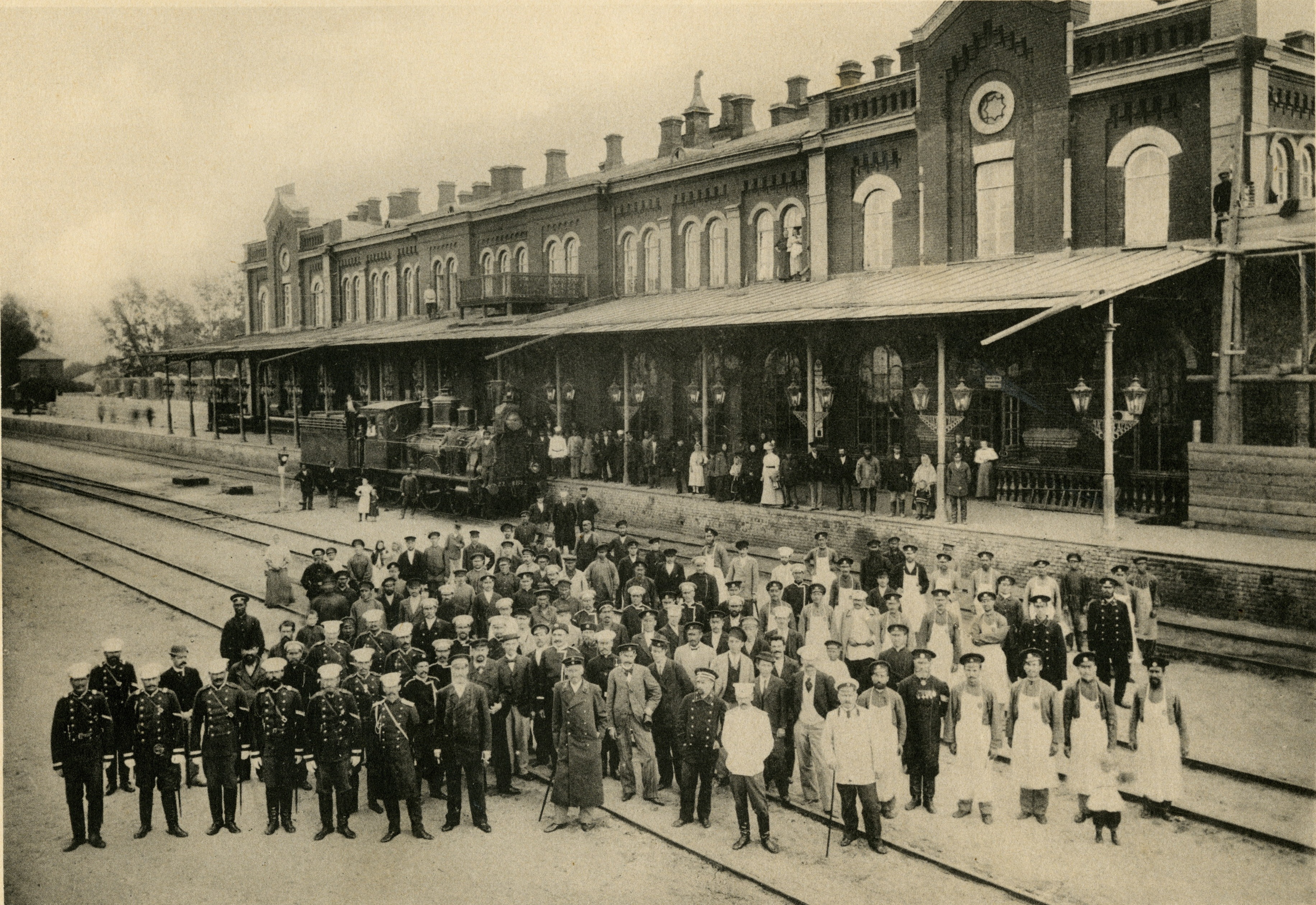 В 1900 году П.М.Зыбин строительство пристройки к вокзалу. Вот и собралась разночинная публика по поводу этого торжества. 1900 год это! Маленький паровозик пусть не смущает и не вводит в заблуждение. Маневровый он.