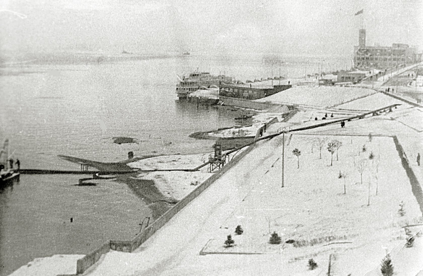 До 1972 г. - нет опор с "трубками", до 1972 г. стояли от ротонды до горки перед 8 причалом, после 1972 г. - от 8 прмчала в сторону моста.