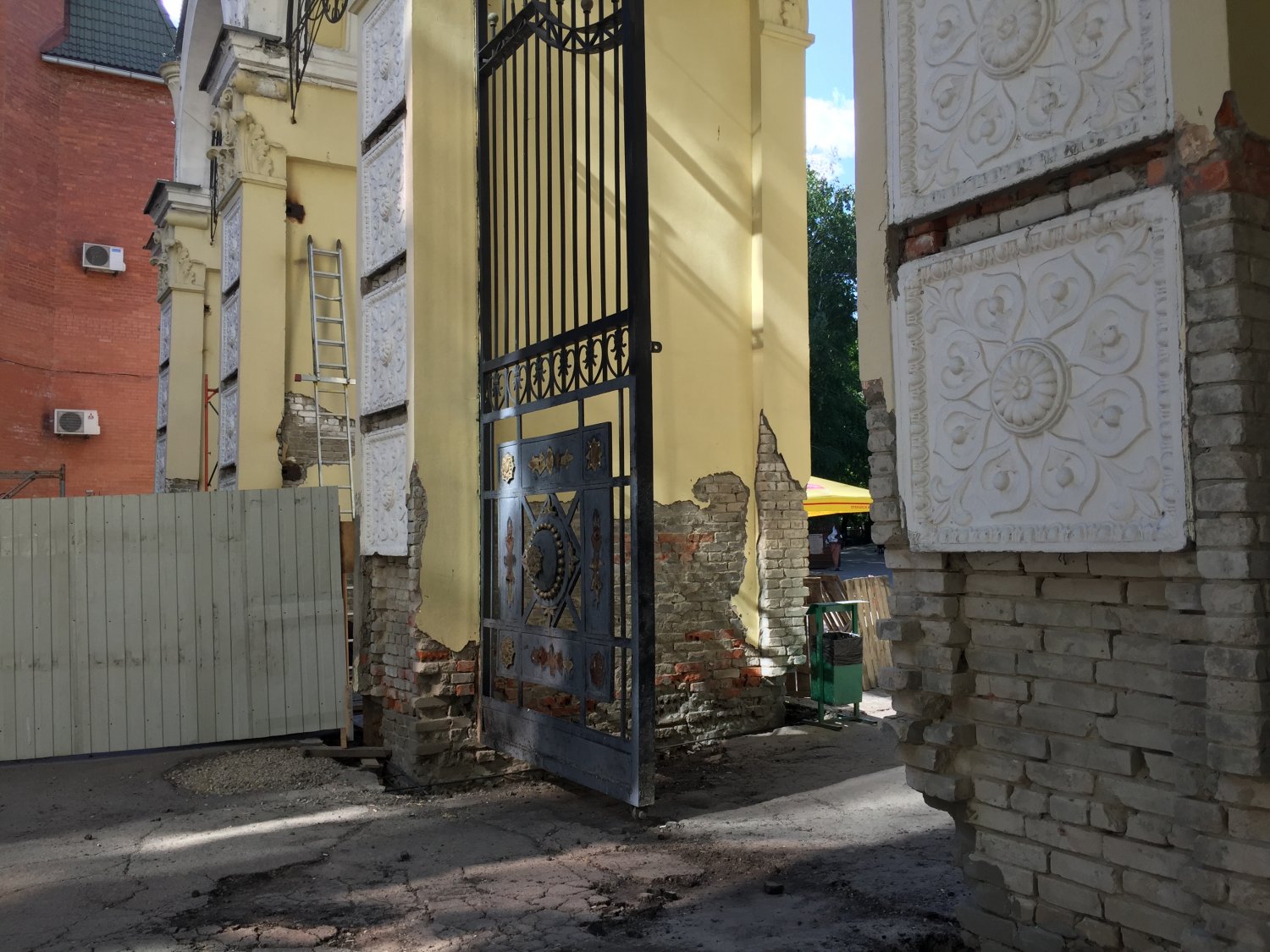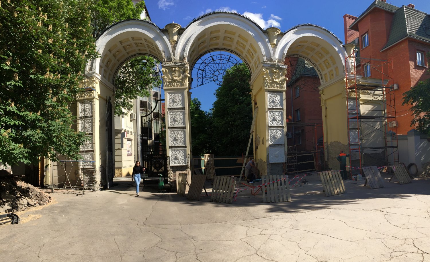 «Ворота со стороны улицы Чернышевского представляют собой кирпично-арочную конструкцию с металлическими створками, которые украшены декоративными элементами. Они требовали ремонта, поэтому сейчас находятся на реставрации. Их внешний вид, цветовая гамма, декоративные элементы будут полностью сохранены в том виде, в котором они и были. По имеющимся образцам будут воссозданы недостающие элементы, а вышедшие из строя — отремонтированы. Летом ворота вернут на место. Ориентировочный срок окончания работ — июль 2019 года», — рассказала Телегина.