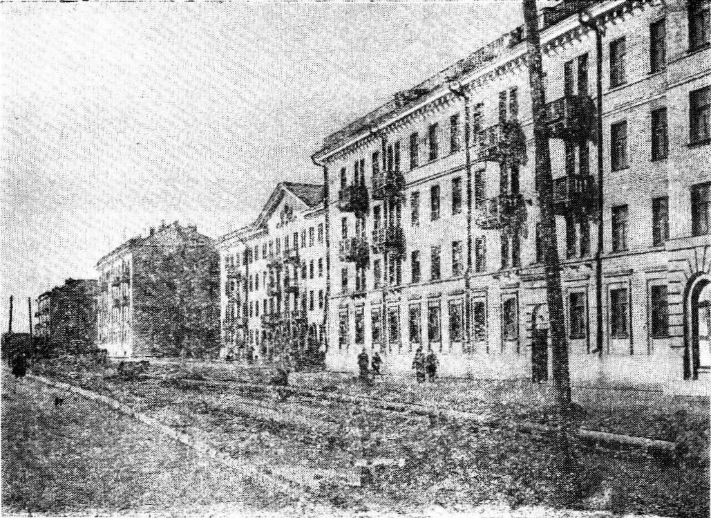 Из книги А.И. Осятинского "Строительство городов на Волге". Рис. 134 на стр. 146: "Застройка на шоссе Энтузиастов, 1950 г.".