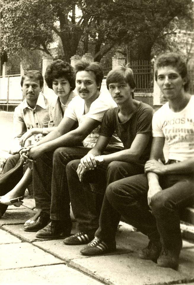 В восьмидесятые годы ограды перед Политехом, помнится, не было, она сохранялась только у стадиона. А скамейка характерная.