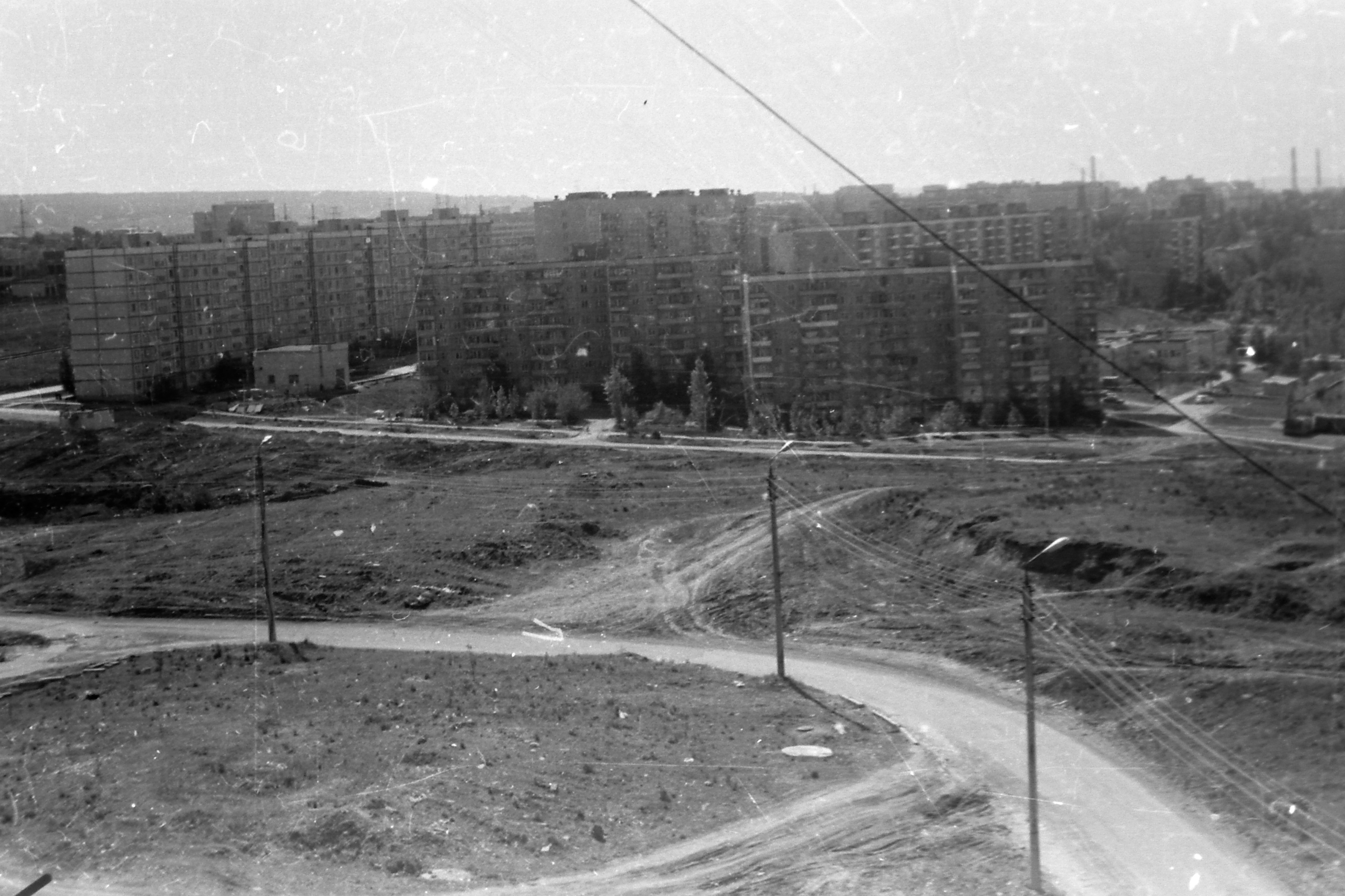 Насчет съемки не с дома по Днепропетровской - соглашусь. Моя ошибка насчет съемки с Днепропетровской 2 , извиняюсь! Присмотрелся - а вот эта изогнутая грунтовка на фото - это как бы Днепропетровская и есть, просто до постройки дома 2. Это дает возможность поточнее определить верхнюю дату съемки - Ведь Днепропетровская, 2 введен в эксплуатацию в 1988.