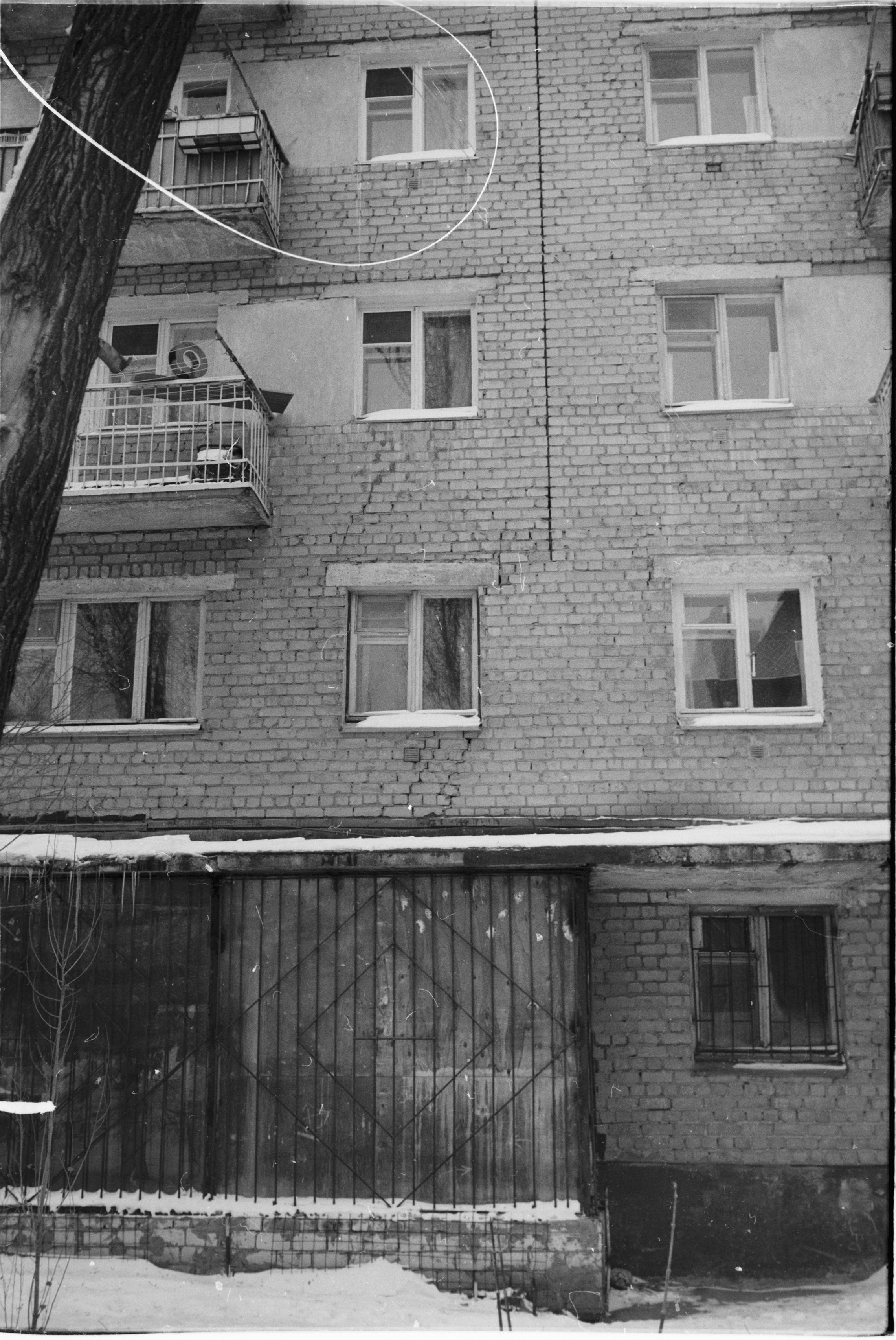 По трещинам и балконам (в т.ч. вещам на балконе) совпадает со снимком 2017 года, дверь справа от входной и окно заделали- на фото по ссылке это видно, при строительстве магазина фасад первого этажа облепили плиткой.