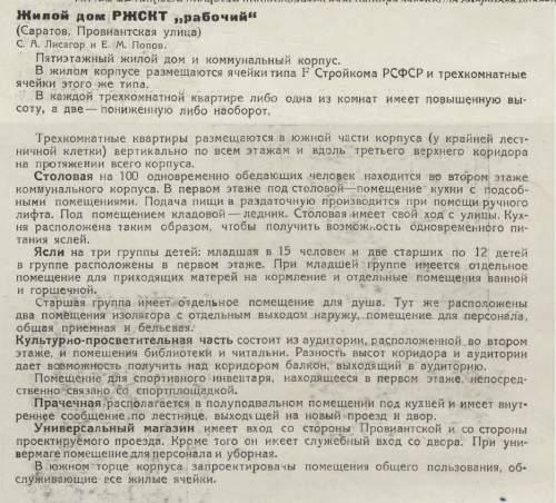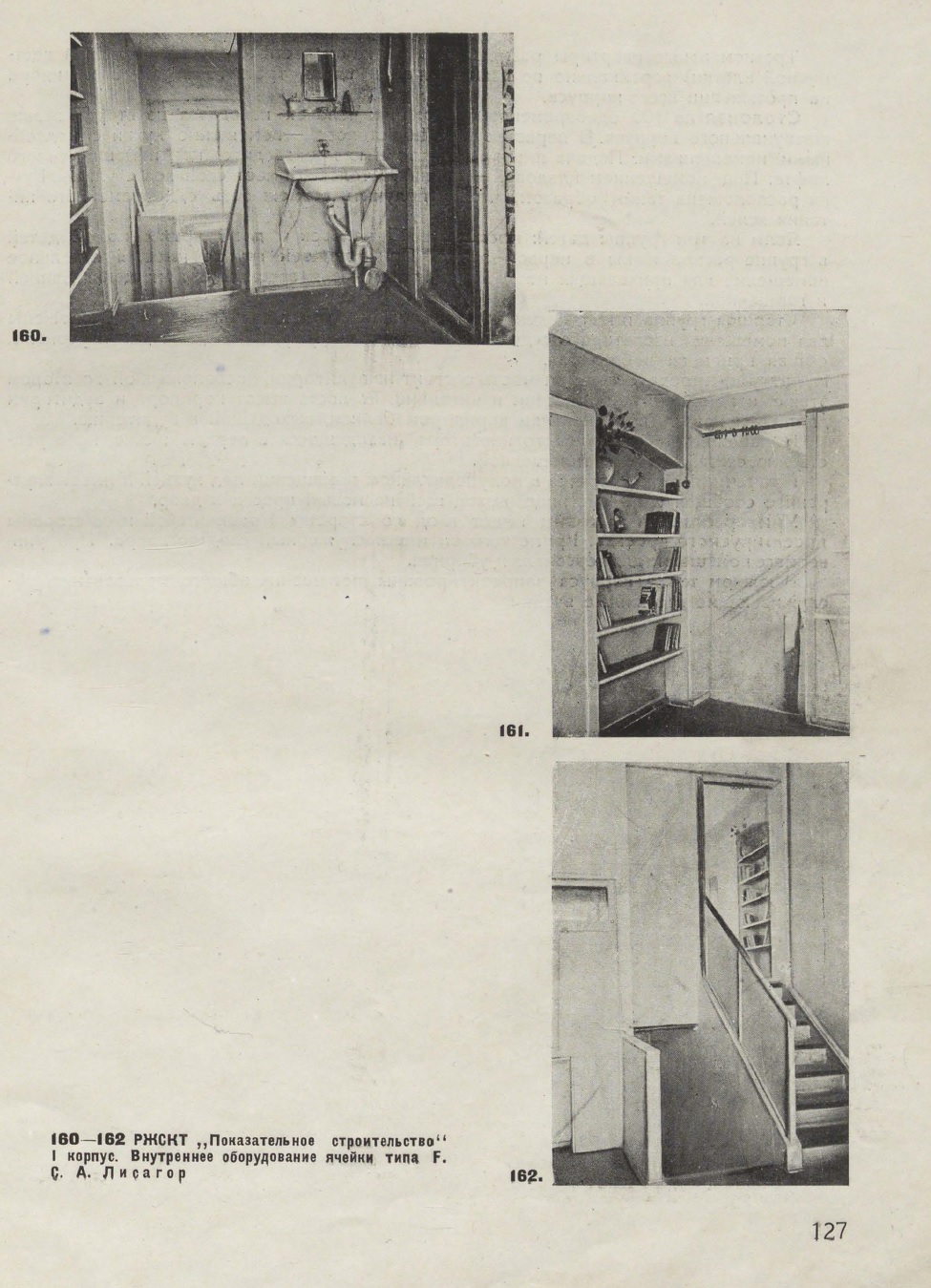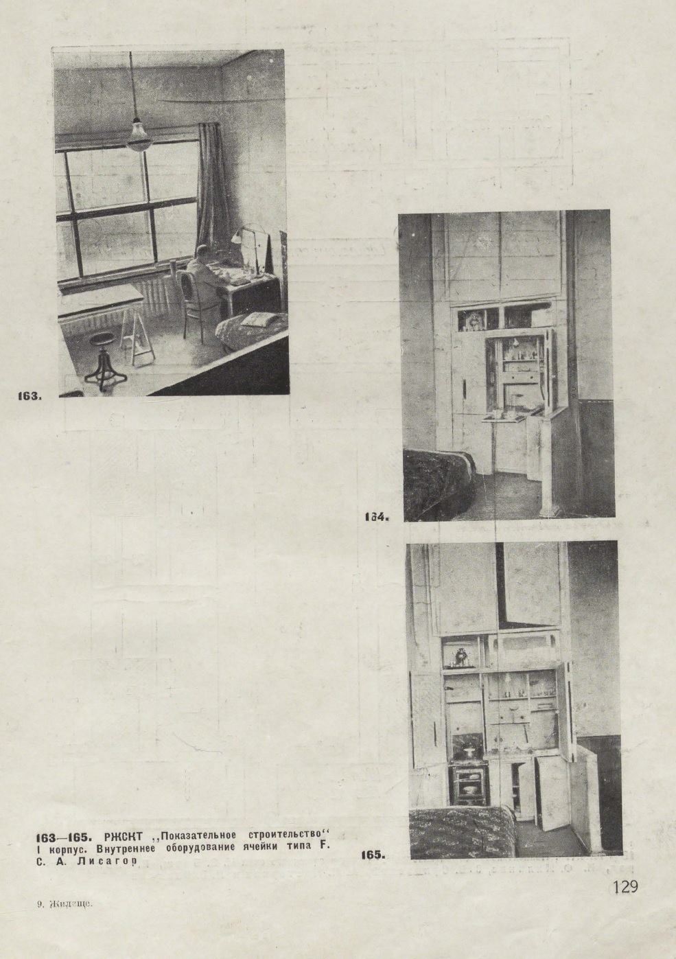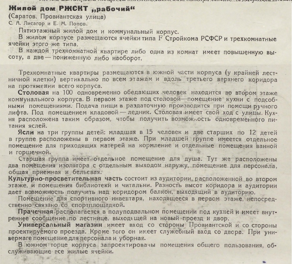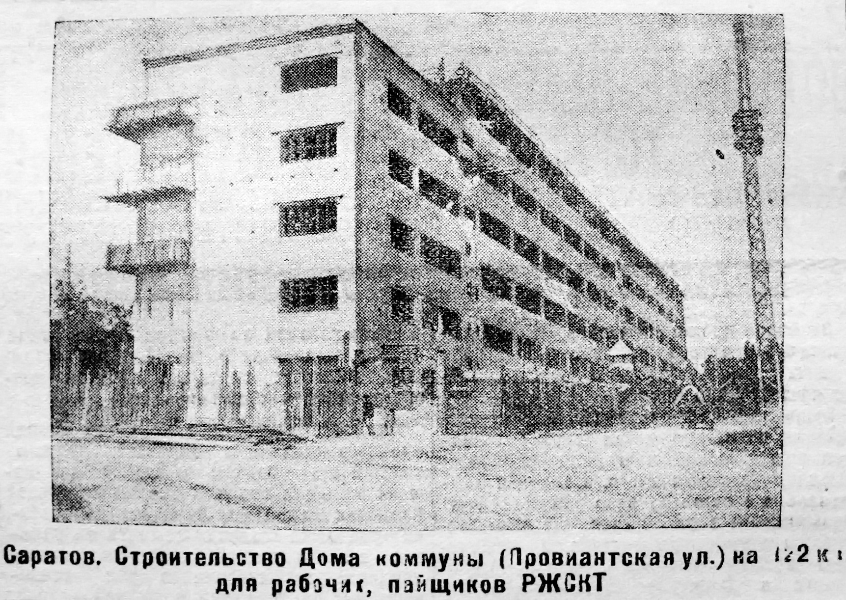 РЖСКТ „показательное строительство“ (Москва), общежитие рабочих ватной фабрики политкаторжан (Москва — Ростокино), дом Уралоблсовнархоза (Свердловск), РЖСКТ „Рабочий“ (Саратов)
