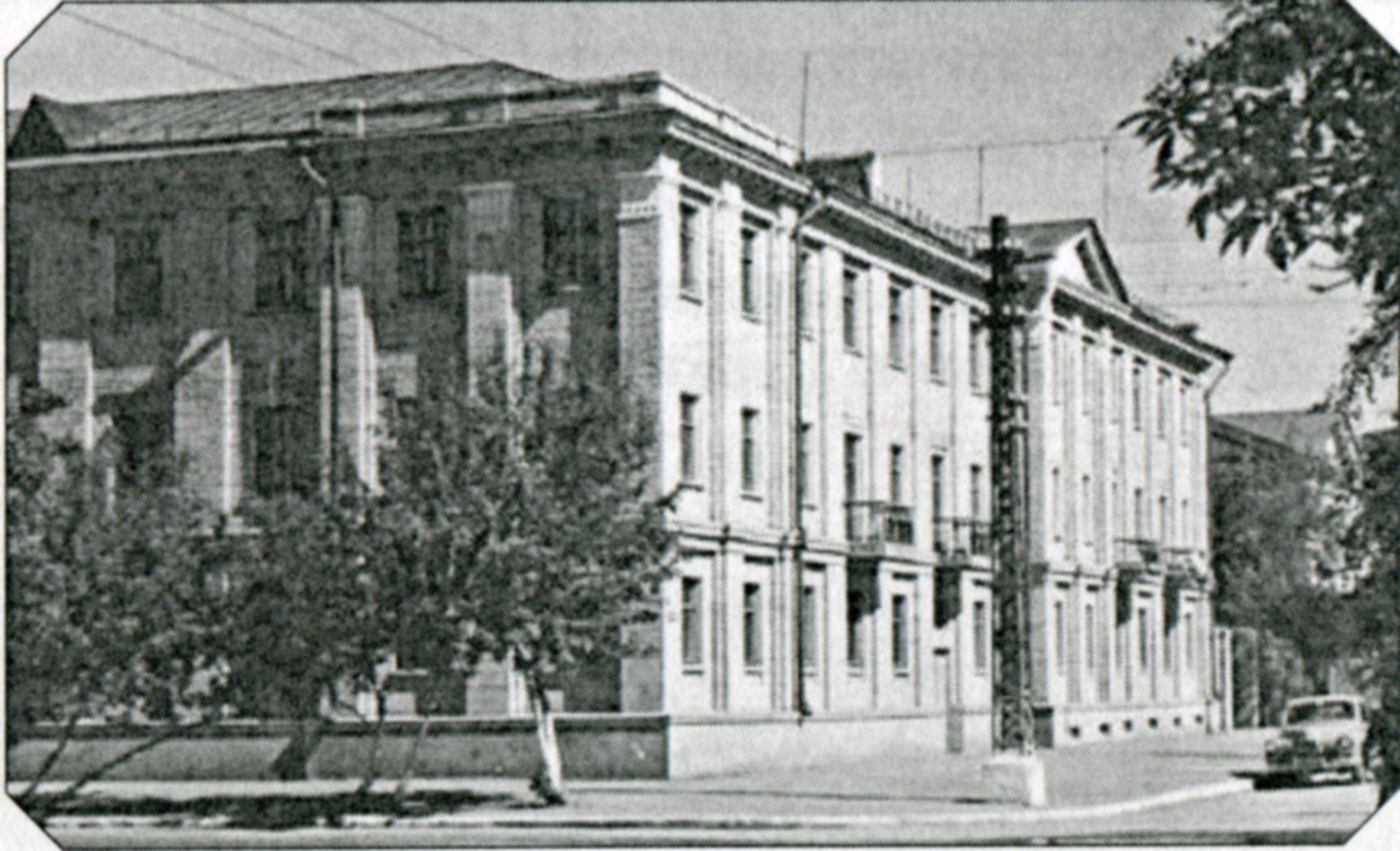 Довелось бывать в этом доме-там жил мой одноклассник.Двор был зеленым и ухоженным,настоящий оазис в пыльном городе..В правой стороне снимка видна часть здания школы №67 или тогда еще госуниверситета (?). Школа там обосновалась.с 1954-1956гг. Может теги нужны соответствующие?