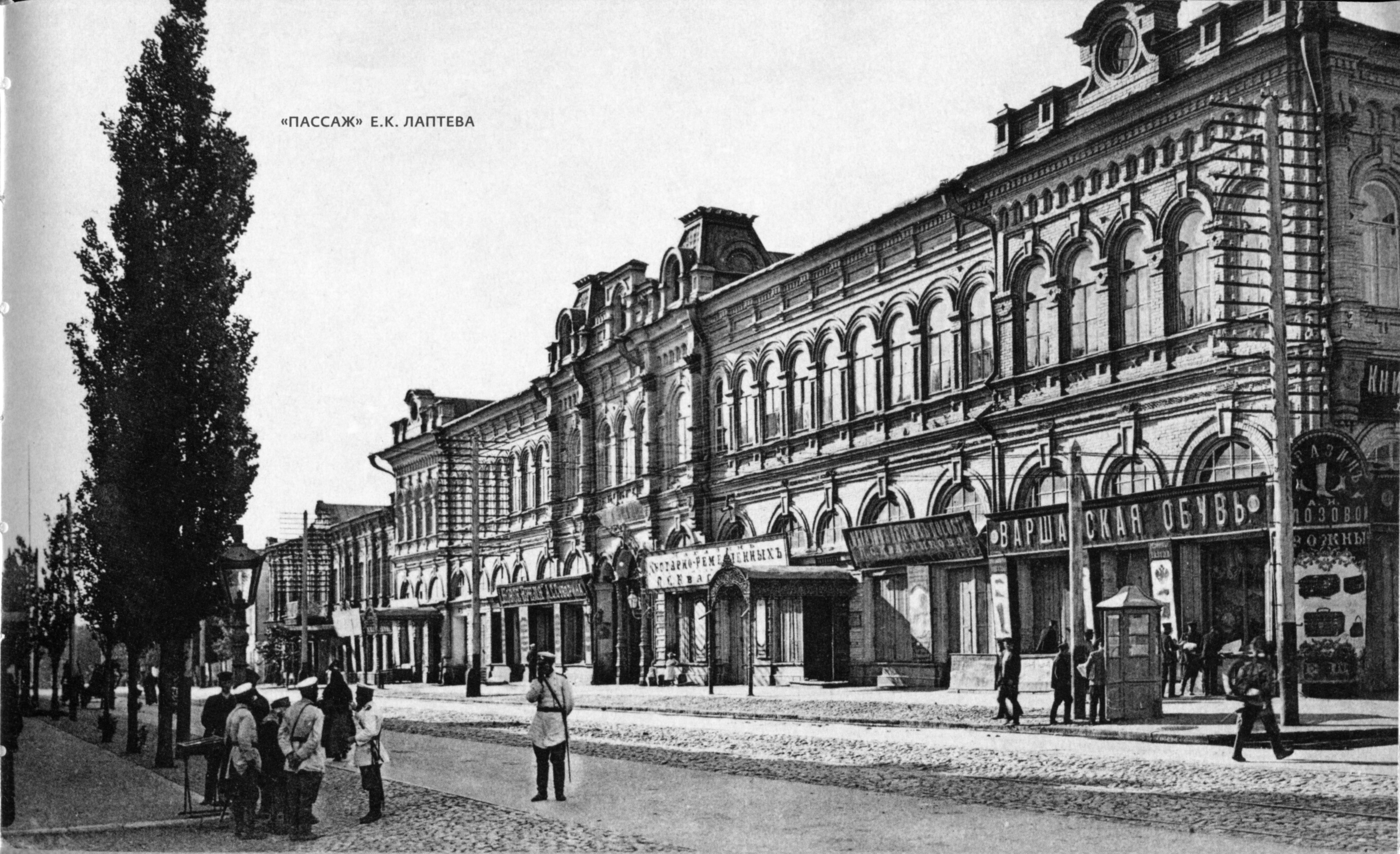 "Здания университета строились несколько лет, а между тем осенью 1910 г. надо было начинать занятия на втором курсе, открывать новые кафедры. В здании на углу Никольской и Б. Сергиевской уже нельзя было разместиться. Встал вопрос об аренде дополнительных помещений. Была создана комиссия, которая весной 1910 г. осмотрела ряд зданий в центре города. 20 мая 1910 г. Совет ИНСУ, обсудив вопрос о размещении второго курса, одобрил аренду для этой цели обширного верхнего этажа дома Юренкова "Пассаж"..."