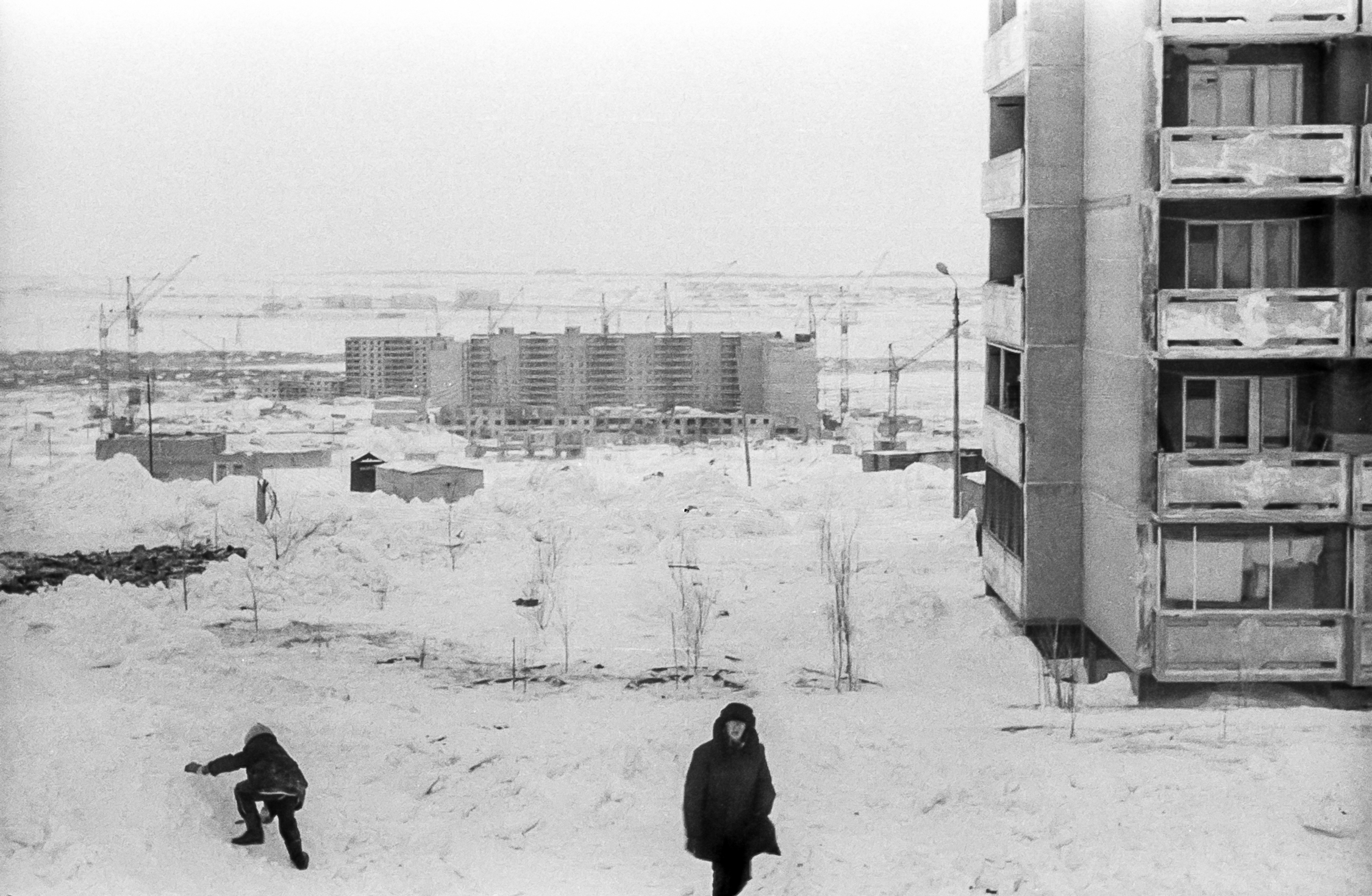 На заднем фоне 1 и 2 подъезды Уфимцева 6к1 - выделил зелёным. Будущее здание милиции/полиции выделил красным. Построили трансформаторные пункты, фиолетовым около Уфимцева 12, оранжевым между будущих домов 8 и 4 по 2-ой Электронной