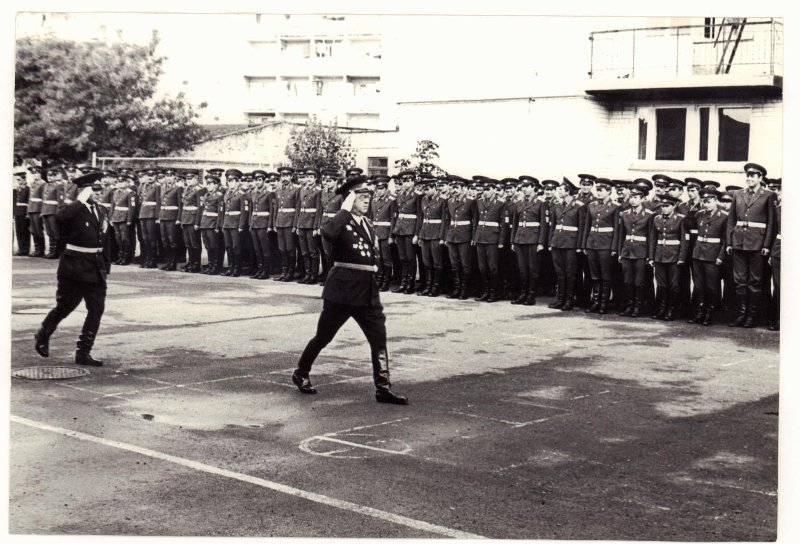 Барашков Николай Александрович, полковник медицинской службы, начальник военно-медицинского факультета Саратовского медицинского института перед строем курсантов.