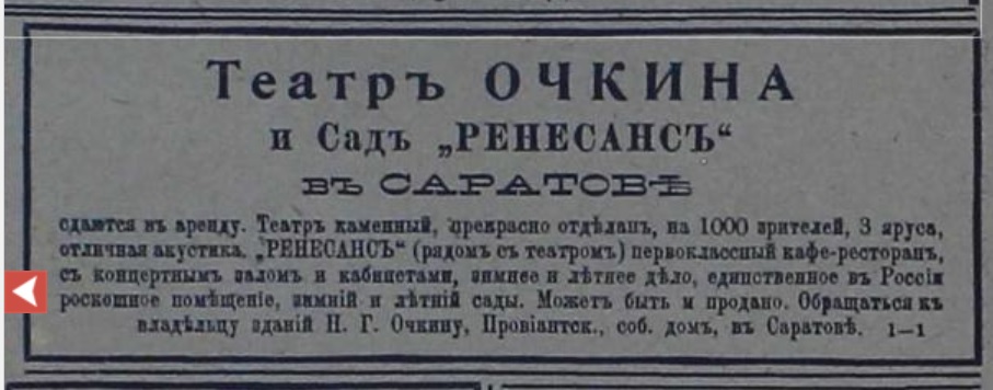 Поставил до 1911 года по прохождению почты открыткой. Надпись над входом - "САДЪ РЕНЕСАНСЪ".