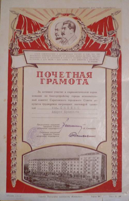 Он же есть и на Почетной грамоте, грамота датирована 1952 годом