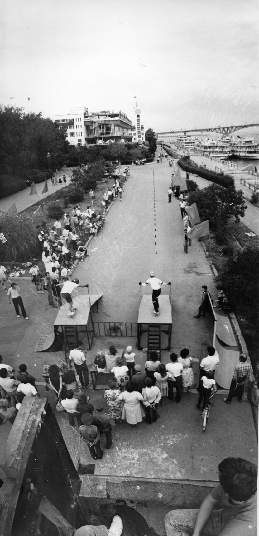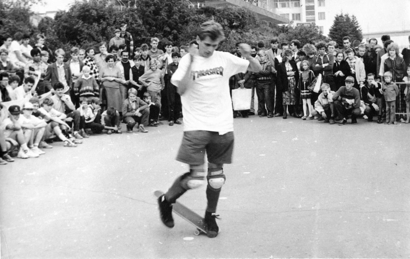 Самые большие и лучшие соревнования по этому виду спорта в конце 80-х - начале 90-х проходили, как ни удивительно, именно в нашем городе. Сюда съезжались все скейтеры СССР. Контест шел 3 дня и каждый день была насыщенная программа: прогулки с дискотеками на арендованном теплоходе, тусовка на турбазе на острове, прокат лодок там же, бильярд, тир и т.д. Все это было бесплатно для участников. И почти всех селили в гостинице также бесплатно или за счет спонсоров.