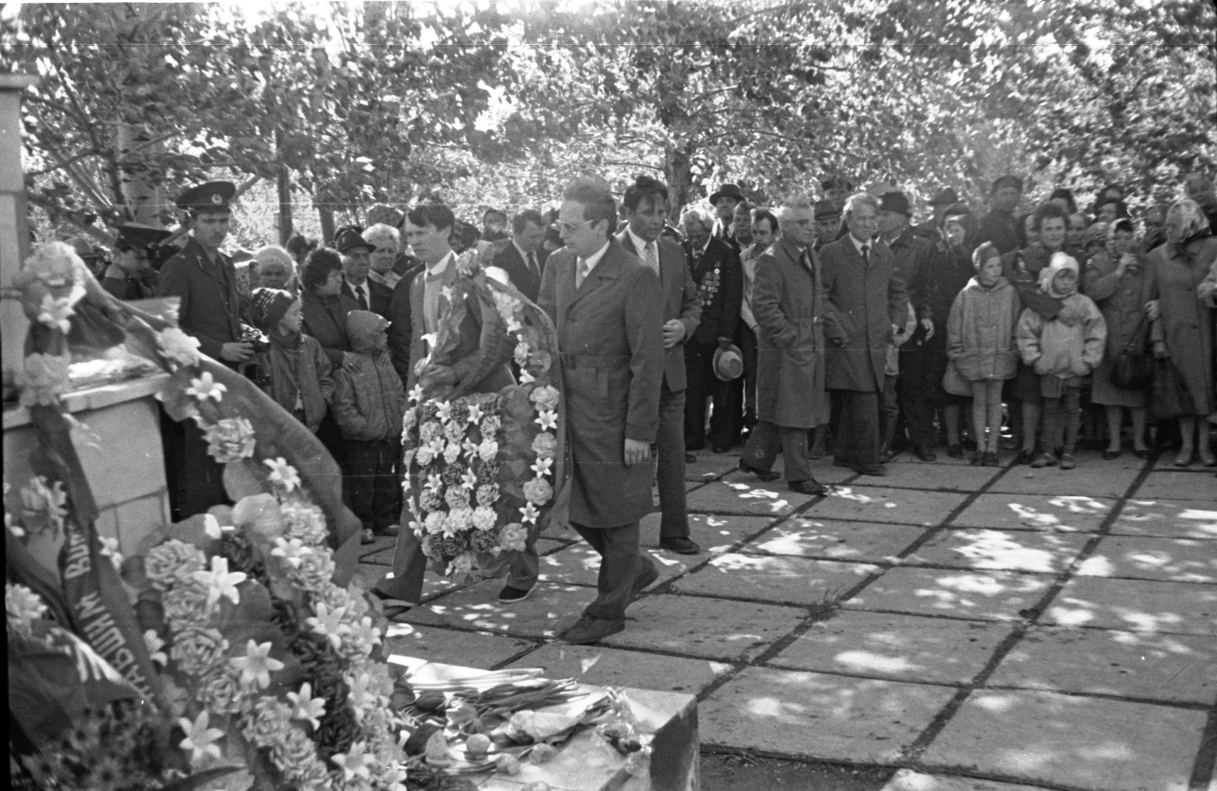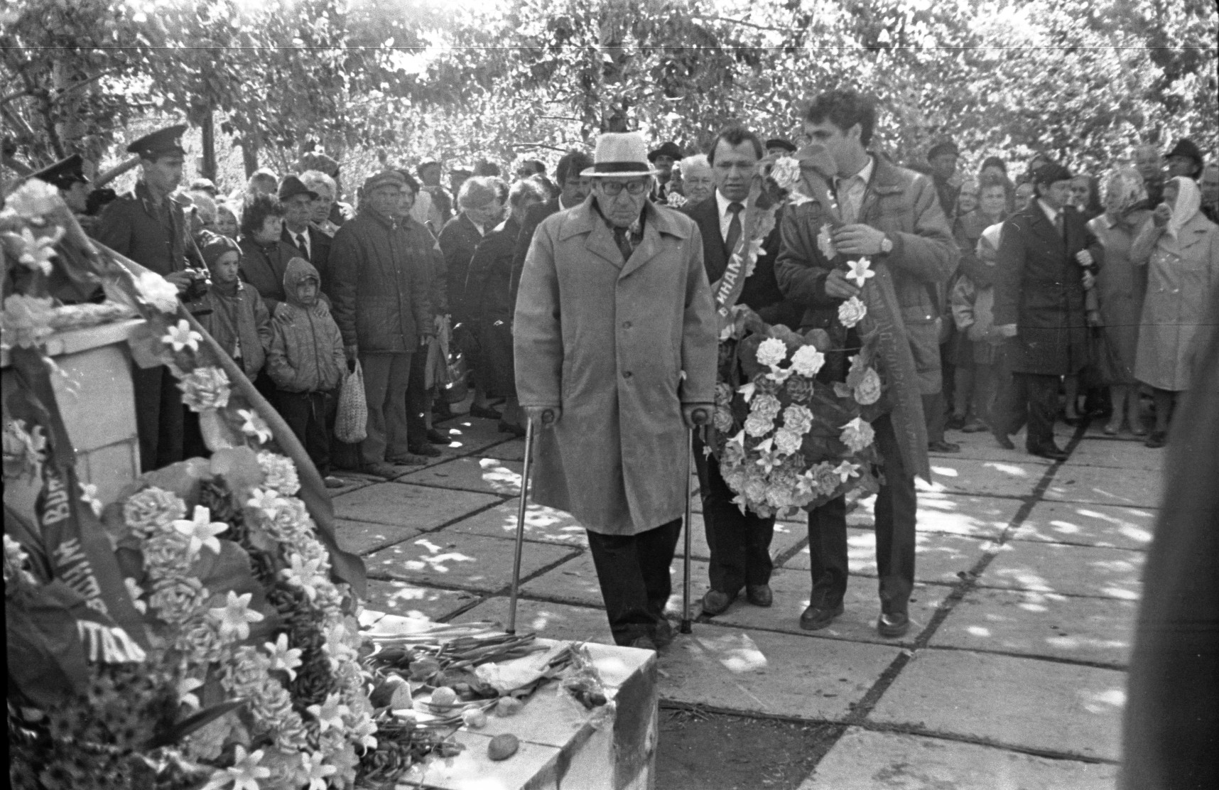 Фото 1991 года Юрия Мещерякова. Май месяц. Возложение венков к памятнику - обелиску в честь воинов, умерших от ран в госпиталях Вольска и захороненных на городском кладбище. (1941-1945).На заглавной фотографии левой рукой венок несет первый секретарь Вольского ГК КПСС Дмитрий Даров. До августа 1991 года осталось несколько месяцев. То есть, на этой фотографии последнее возложение венка первым секретарем Вольского горкома в нашей истории. В дополнительных фото - другие фото этого дня. Может быть не все знают, что в Вольске было несколько лагерей для пленных. И умершие пленные похоронены на западной стороне кладбища. К слову сказать, у них установлен огромный католический крест из полированного мрамора.