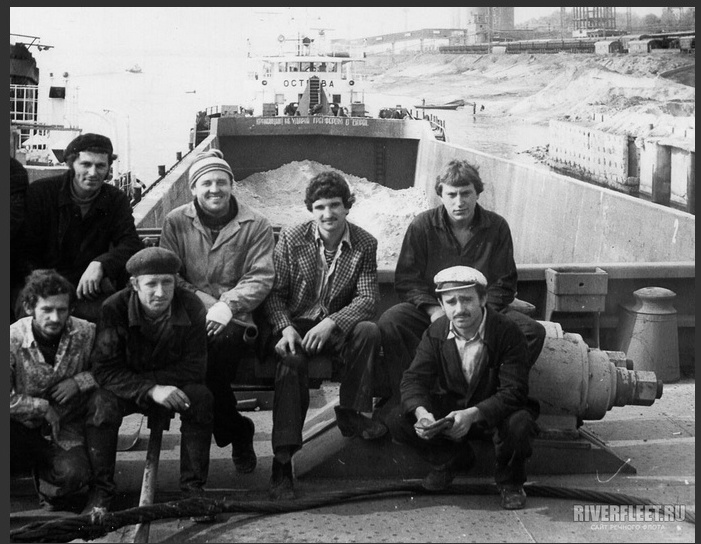 Фотография баржи у погрузного терминала вольского завода "Большевик". Баржи подгонялись к крытой эстакаде (на заднем плане) с ленточным транспортером для подачи мешков с цементом. В дополнительных - подтверждение, что это Вольск.