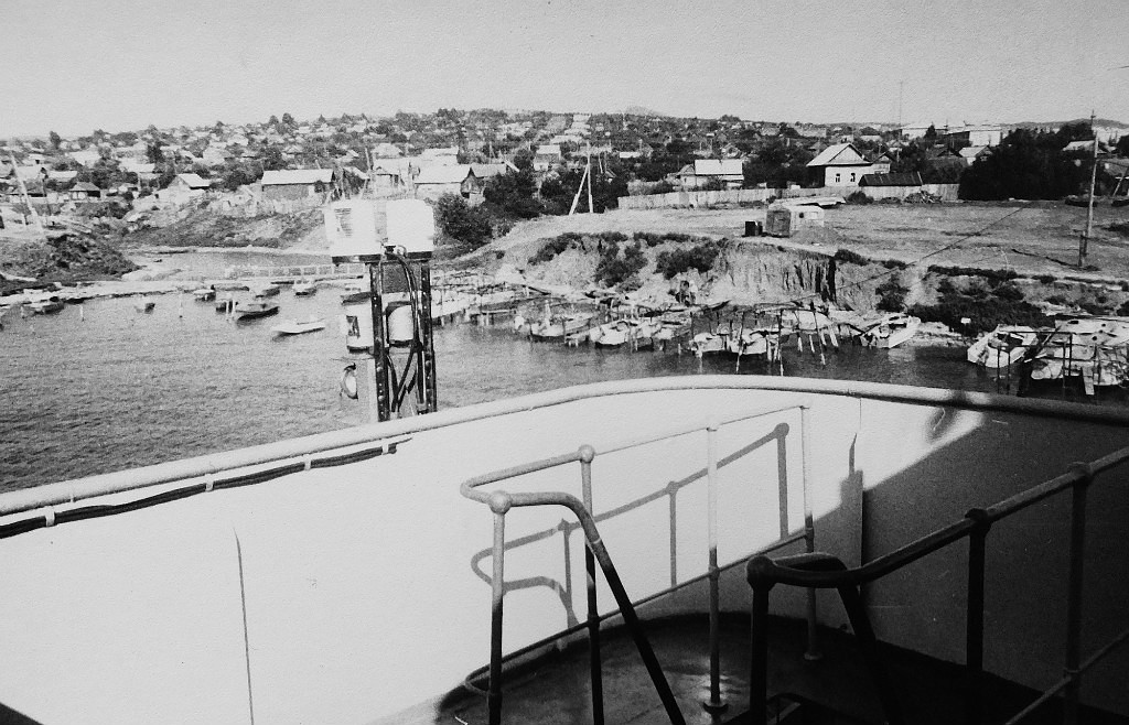 Фотография Бороздина Владимира. Съемка 1980 г. Фото называется в источнике "Старый залив с пешеходным переходом". Так как уточнений по месту в комментариях нет, ставлю точку съемки на хвалынской стороне линии паромной переправы.