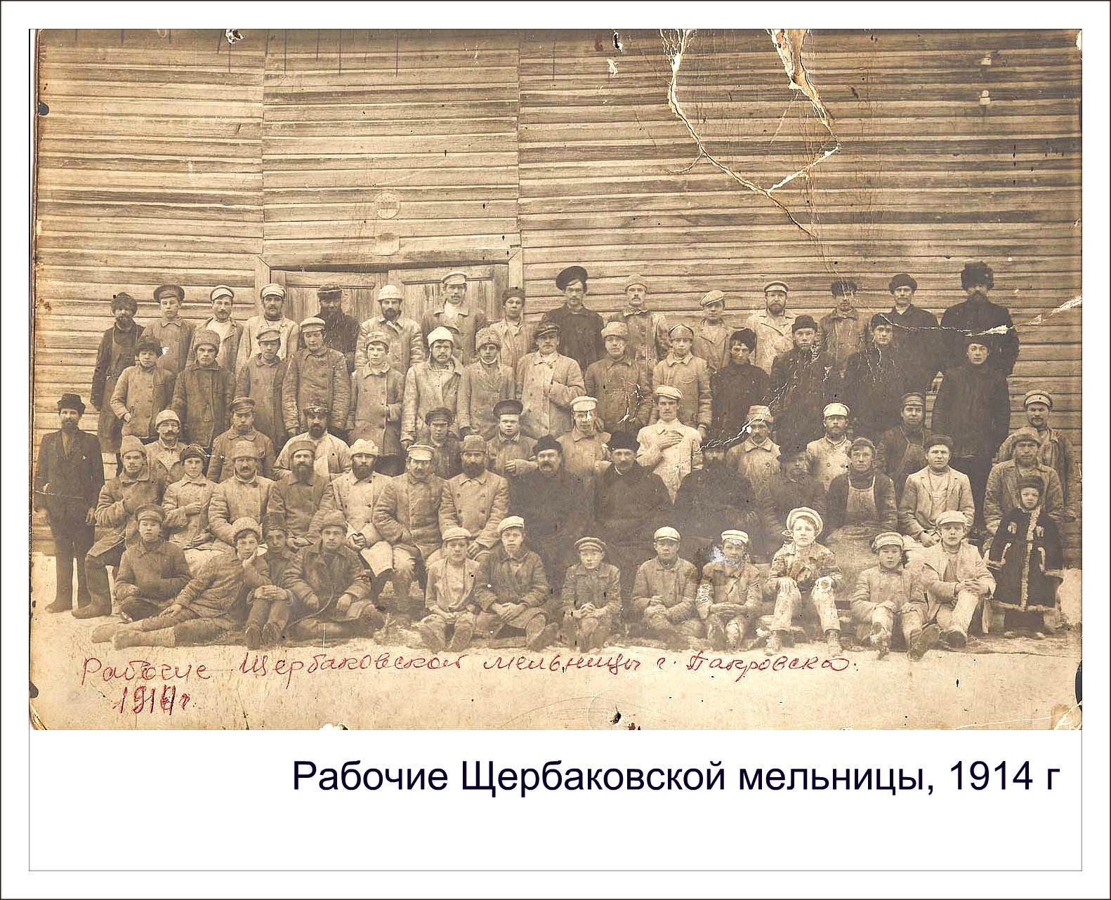 Интересно может один из солидных дядек в центе снимка, сам С.Г. Щербаков. Детский труд видно использовался на мельнице по полной. Можно в описание добавить. Паровая мельница с суточным помолом 19 тонн сортовой муки на улице Линейная основана в 1914 году. господином Щербаковым С.Г. и входила в торговый дом "Щербаков С.Г. и сын".