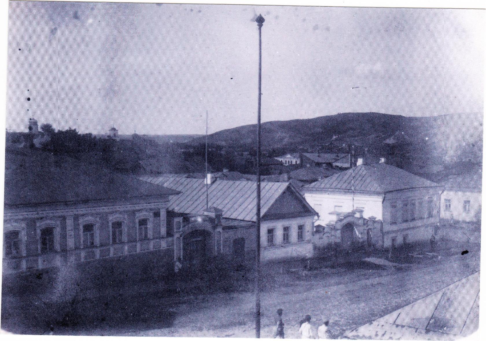 Это фото сделано с веранды дома 49. Это дом купца Суроедова построен в 1896 году. С 1947 года там жила моя бабушка. В правом, нижнем углу снимка видна четырехскатная крыша дома 47.