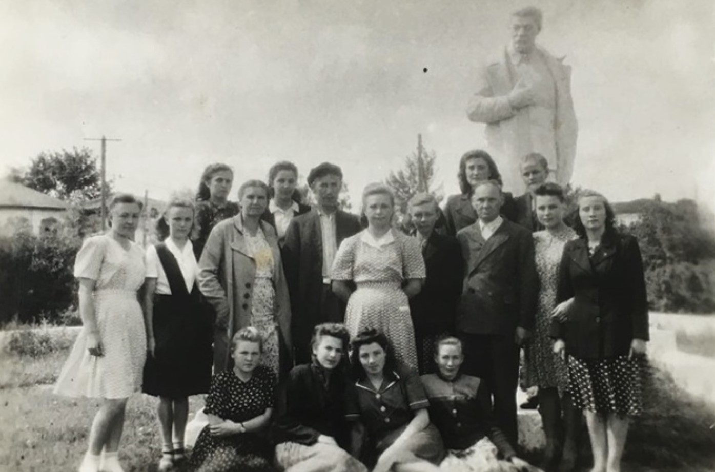 23 июля 1950 г. На фотографии комплексная экспедиция Саратовского университета. На заднем фоне дома по ул Володарской. Вероятно, этот памятник поставили на постамент в другой части парка после 1953 года (https://oldsaratov.ru/photo/gubernia/19124).