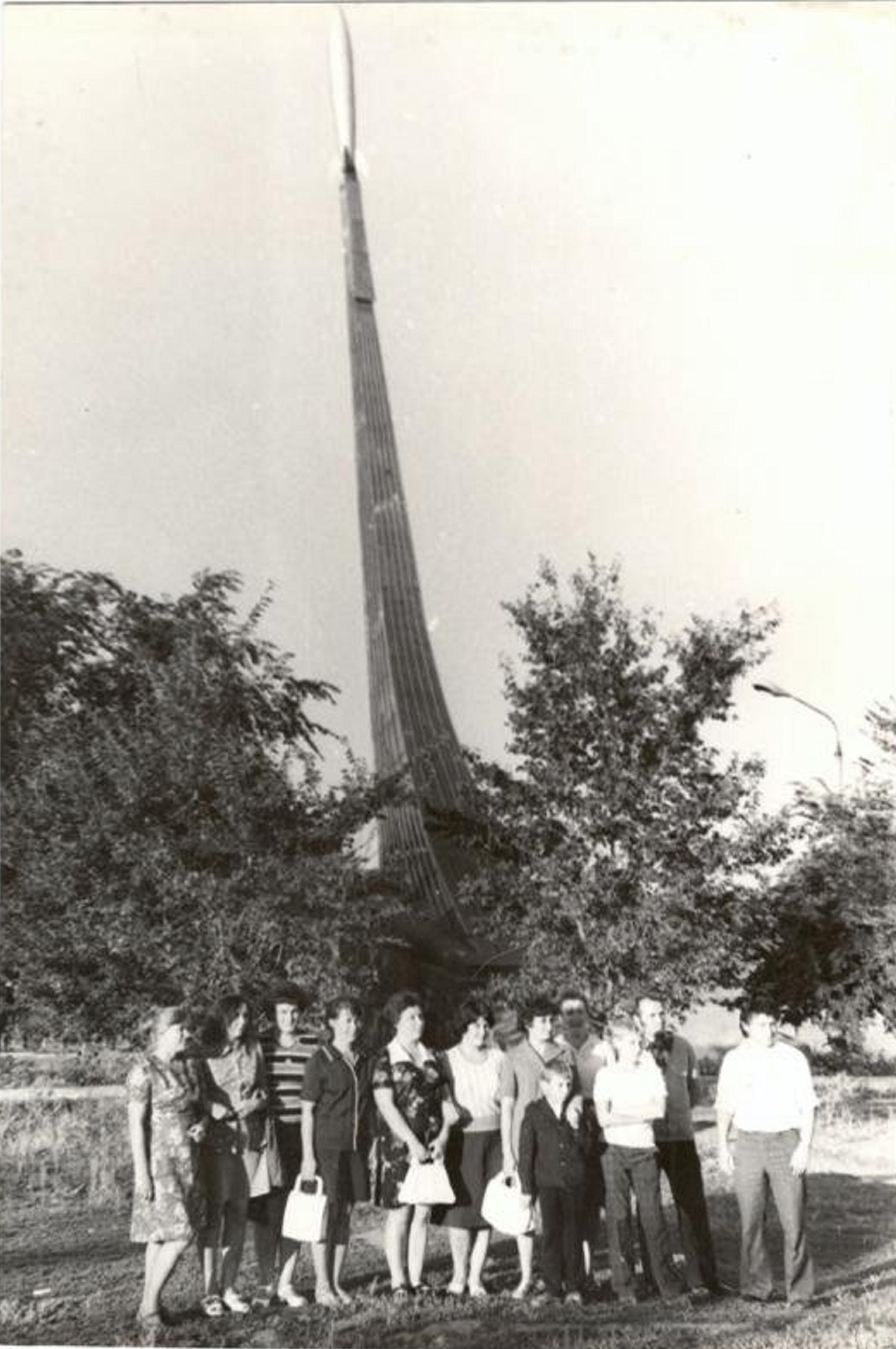 Участники конкурса крутильщиц предприятий объединения «Союзхимволокно» у обелиска на месте приземления Гагарина Ю.А.