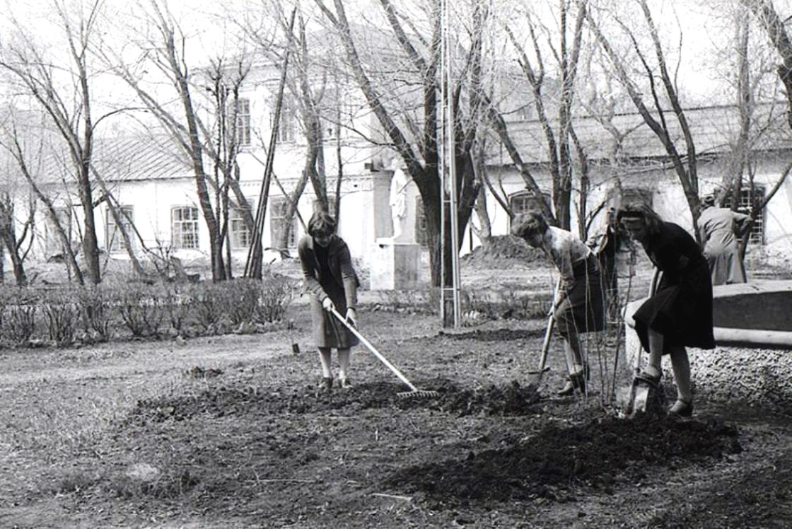 "Учащиеся ХМТ на воскреснике по уборке территории городского парка, апрель 1979 г. Из архива Светланы Хоружей.