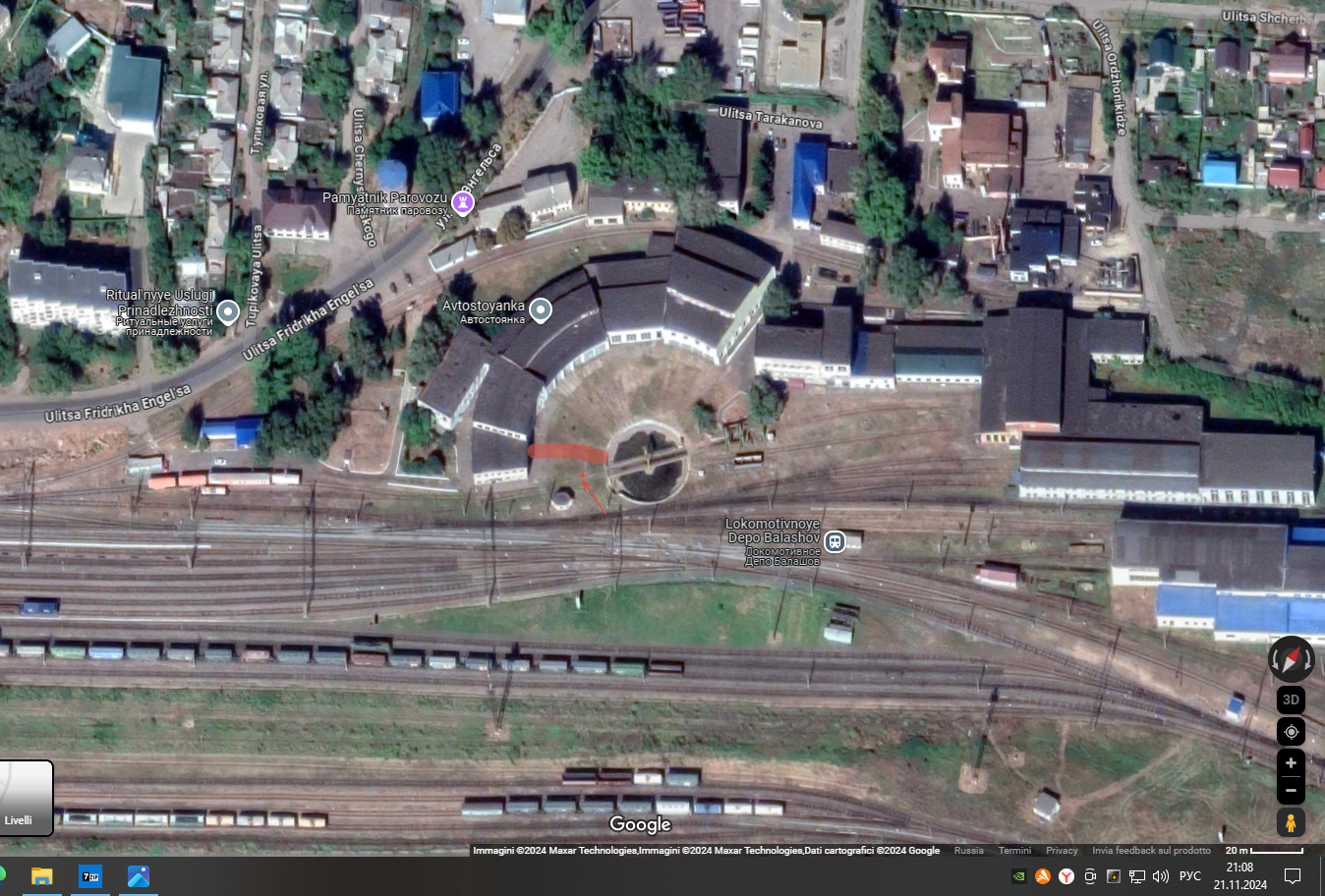 Да,на этом веере, но на другом пути. Депо представляет собой несколько зданий,построенных на веере в разное время. Самое большое- сектор на 6 локомотивов, паровоз стоит на 2 пути из 6-ти. Позже поставлю точку.