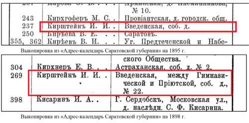 С 1879 года домовладение числилось за надворным советником Иваном Венедиктовичем Кирштейн. Согласно саратовским «Адрес-календарям», после него объектом владел его сын Илиодор Иванович Кирштейн - почтово-телеграфный чиновник 5-го разряда.