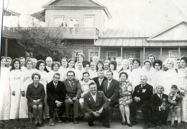 Фото из архива Платоновой. В описании сказано, что это памятное фото после концерта художественной самодеятельности. Конец 70Х. Точку не знаю. В дополнительных: артистка Ларионова, снимавшаяся в фильме "Трижды воскресший " в Хвалынском доме отдыха "Просвещенец" в 1959 году.