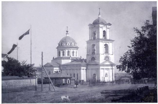 слева Мариинская женская гимназия, впереди чуть левее Троицкий собор