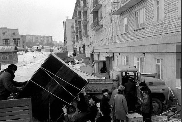 Фото из архива Мещерякова Ю.К. Заселение дома № 181 по ул.Комсомольской. Согласно данным сайта ЖКХ дом построен в 1975 году. Фото 1975 года.