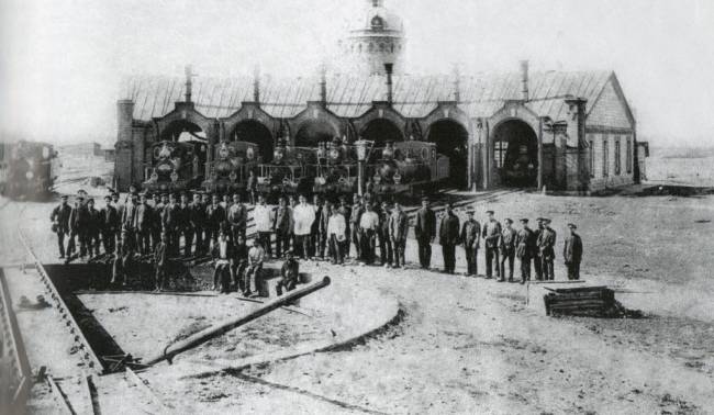 Служащие станции Аркадак в день открытия железнодорожного сообщения «Ртищево-Балашов». В источнике датировано 1886 г.