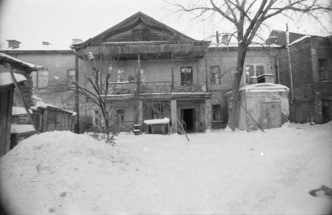 Вход в магазин Саратовского горпотребсоюза, угол ул. Ленинской (ныне ул. Московская) и ул. Кооперативной (ныне ул. им. М. Горького), г. Саратов, январь 1934 г. Фотофонд. Оп. 1-Н. Д. 1337.